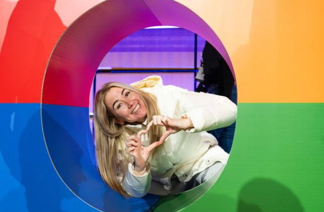 Capture the moment! Ask someone to take a great photo of you — or you and your Dynamics friends — behind the plexiglass sign that represents your role. If no one’s around, a selfie in front of the coloured frame works just as well.