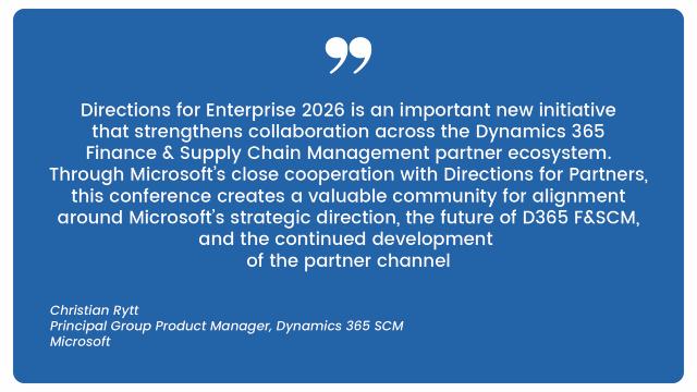 Directions for Enterprise is the new global community for the Microsoft Dynamics 365 F&SCM partner ecosystem.